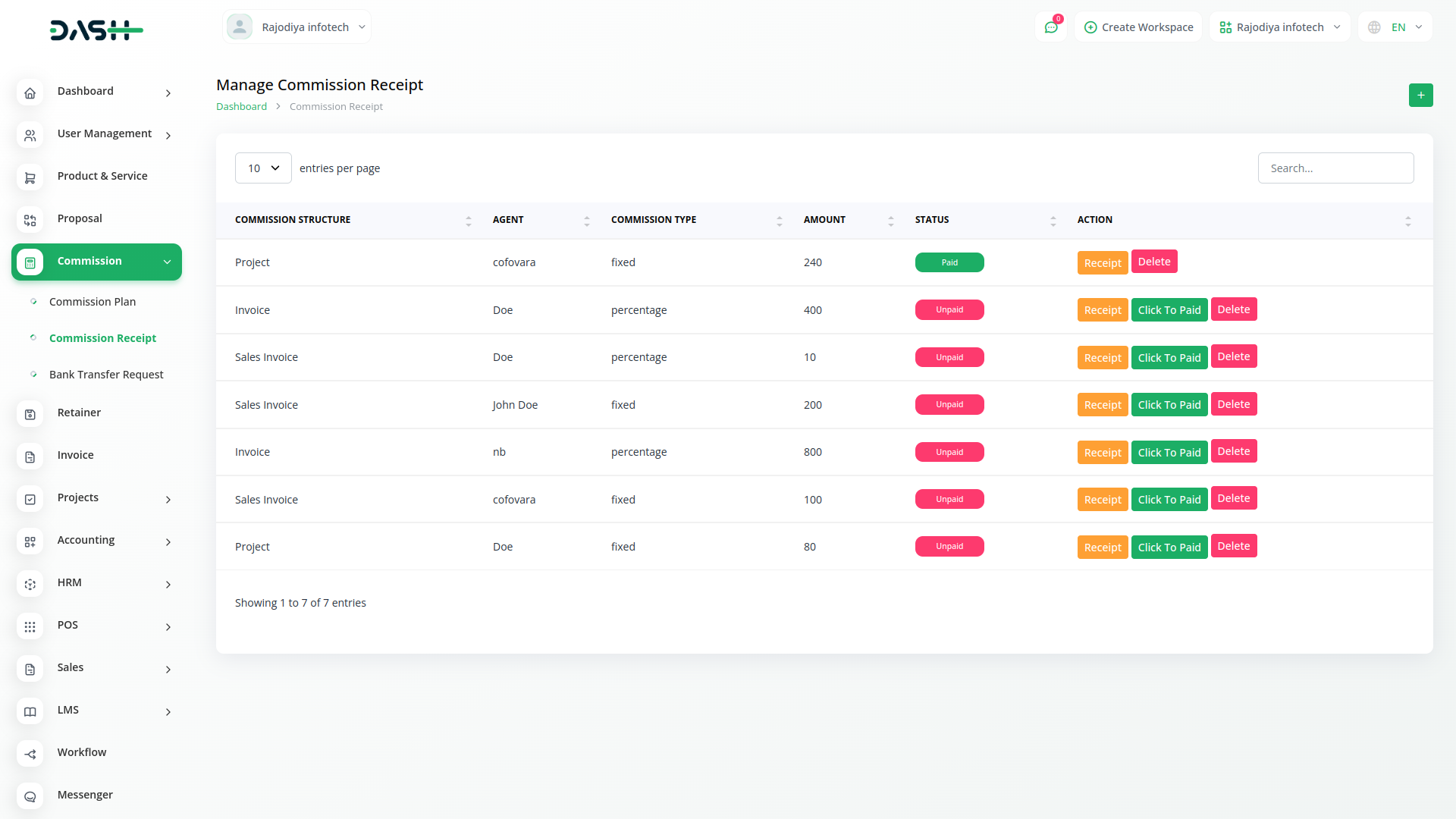 In Commission Module, Commission calculation is about Invoice, Sales Invoice, Project , project and task, agent will get his Commission when payment is made, bank transfer payment in Commission module. When the payment is made, the bank shows its entry in the transfer request so that it knows how much commission is paid.