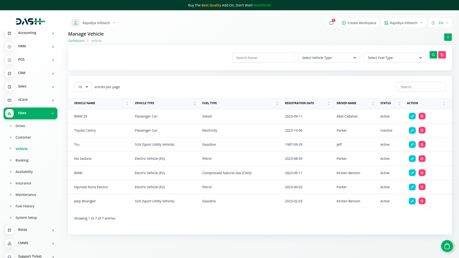In vehicle management, you can keep a list of how many vehicles your company has or how many new ones have arrived, and you can also create where the driver is to be assigned to that vehicle.