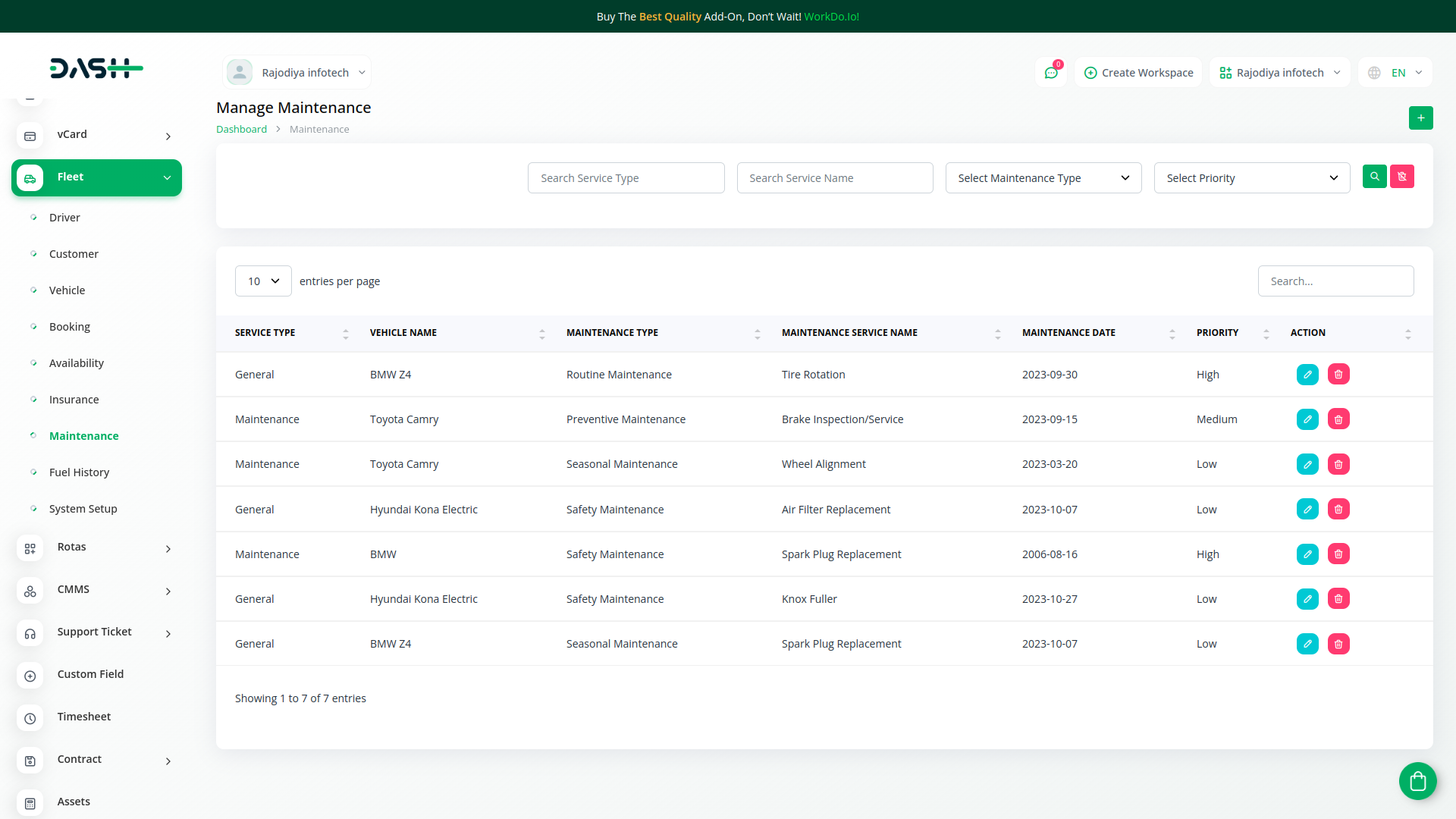 Fleet gives users deep insight into their maintenance needs with detailed Vehicle Bookings, Vehicles,Maintenance,insurance , dashboards