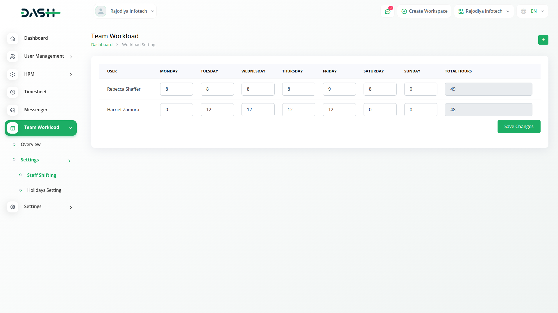 With the Team Workload module, we can find out the total number of hours an employee has the ability to work in a week and the total number of hours worked in these occupations.